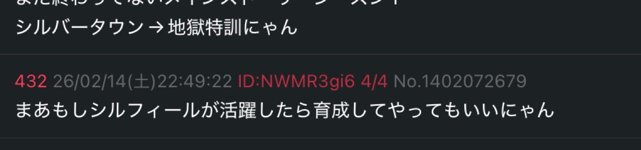 | … | 2526/02/14(土)22:59:45 ID:KquaWMDUNo.1402077057+ヴィヴィとエルフィンを信じてるにゃん! |