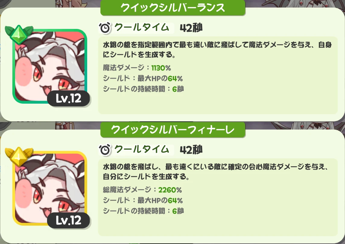| … | 91126/02/14(土)23:54:44 ID:v3USPUX6No.1402099642+>ジェイドの固有システム…いまだによくわかりません… 簡単に言えば強化攻撃や高学年を使うとトークンが手に入って トークンをたくさん持ってるほど低学年の威力が上がるにゃん |