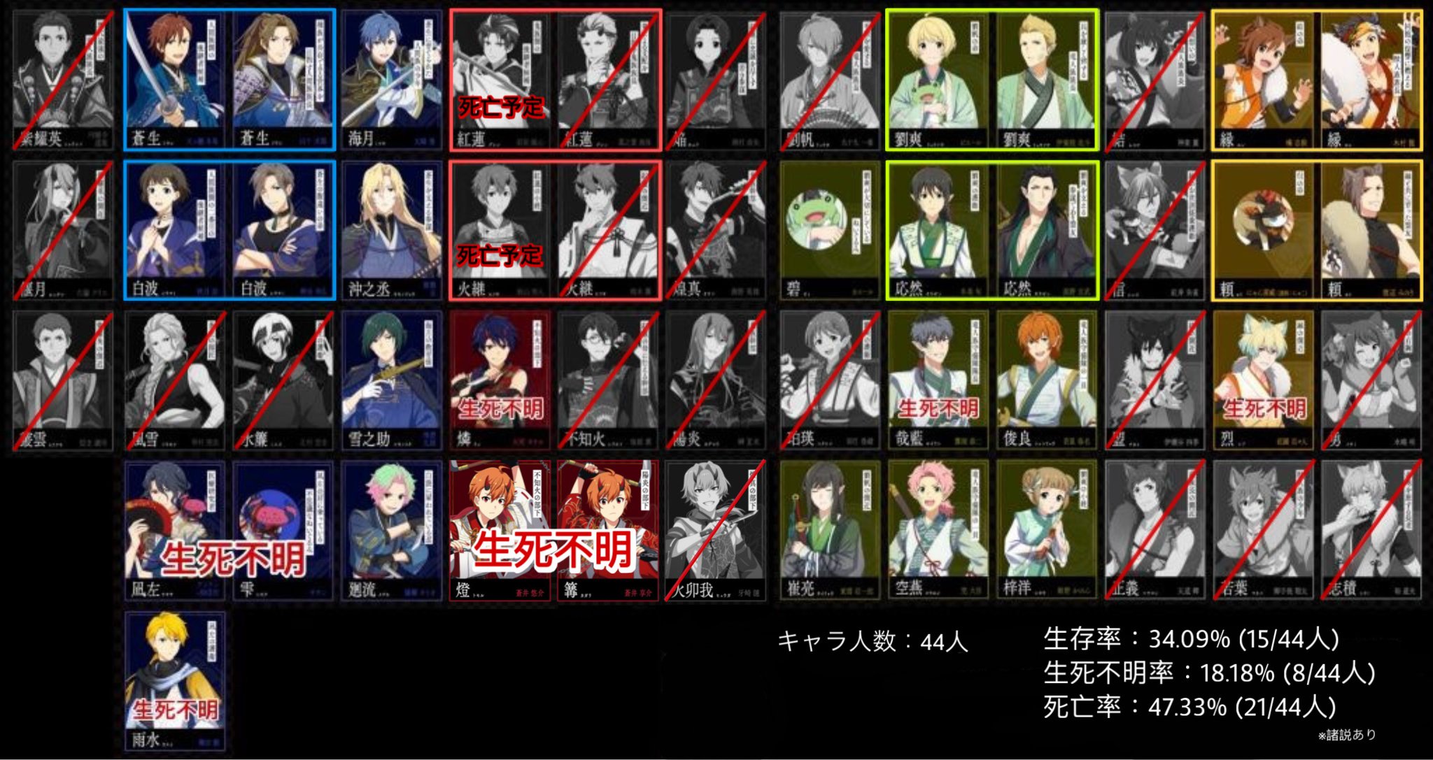 | … | 16126/02/15(日)00:48:21No.1402118953+こっちがday1だったら蒼生と紅蓮も死んだ判定されてた可能性ある? |