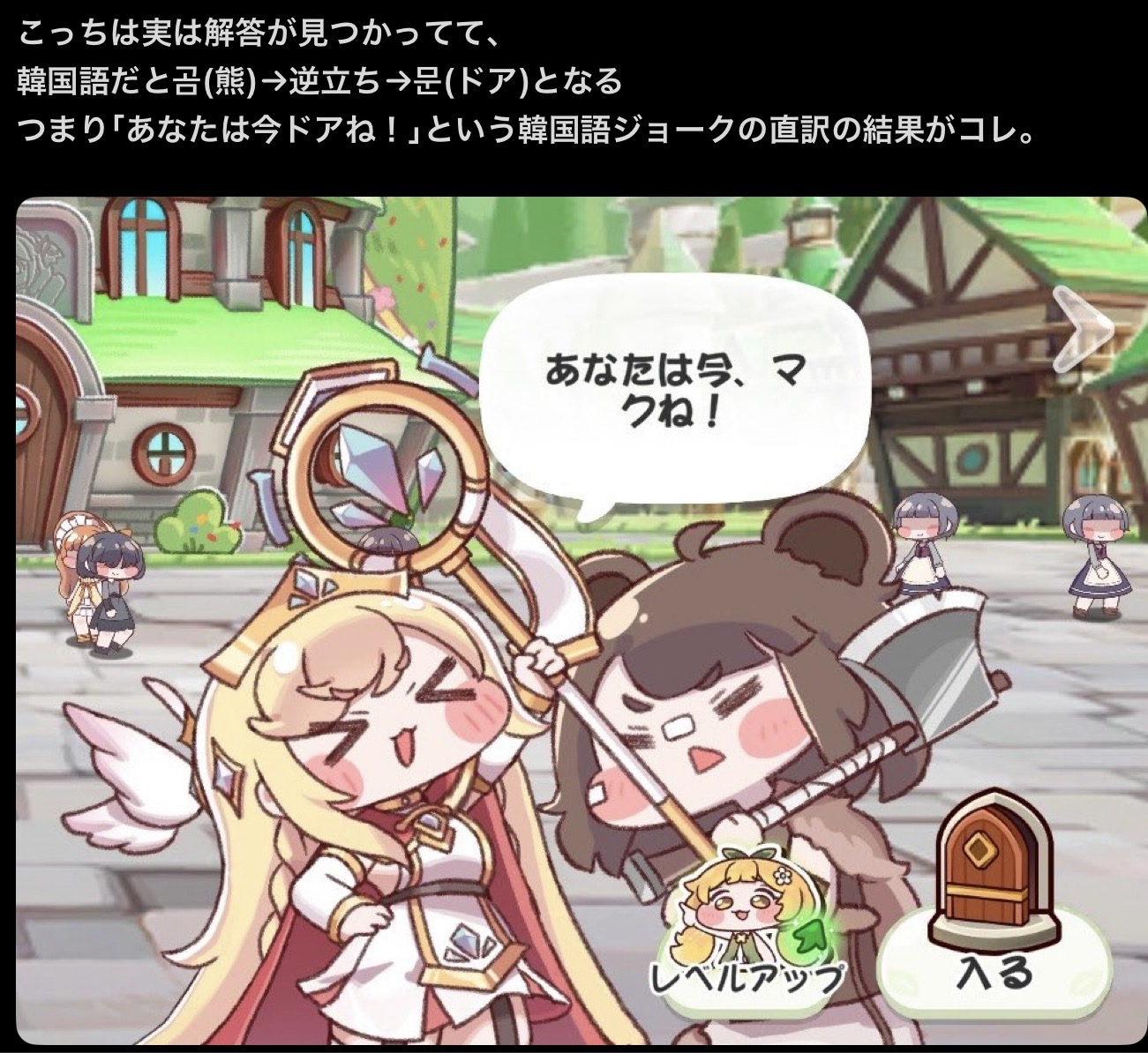 | … | 8126/02/15(日)10:16:21 ID:FDJsTSkANo.1402204517+ボランティアで参加してる韓国語に自信ニキは面白いかスベってるかもよく分からない親父ギャグを翻訳させられるかと思うと涙が出てくるにゃん… |