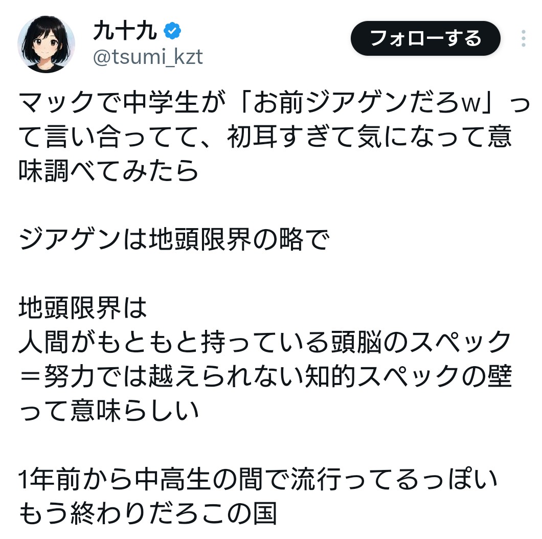 | … | 2626/02/15(日)17:28:04No.1402322373+>地頭がいいって皮肉で使う言葉だろ |