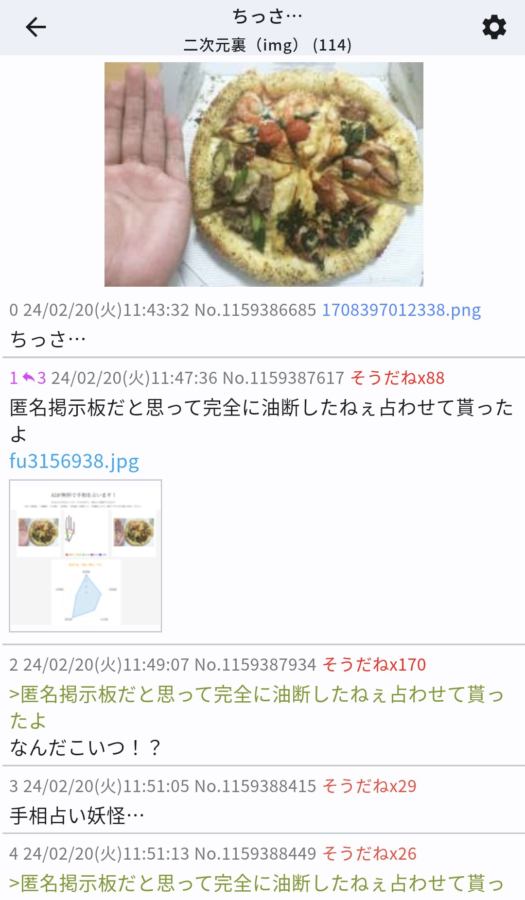 | … | 726/02/15(日)18:02:25No.1402333631+この間も同一人物では無いと思いたいが辻手相占い師見たな… |