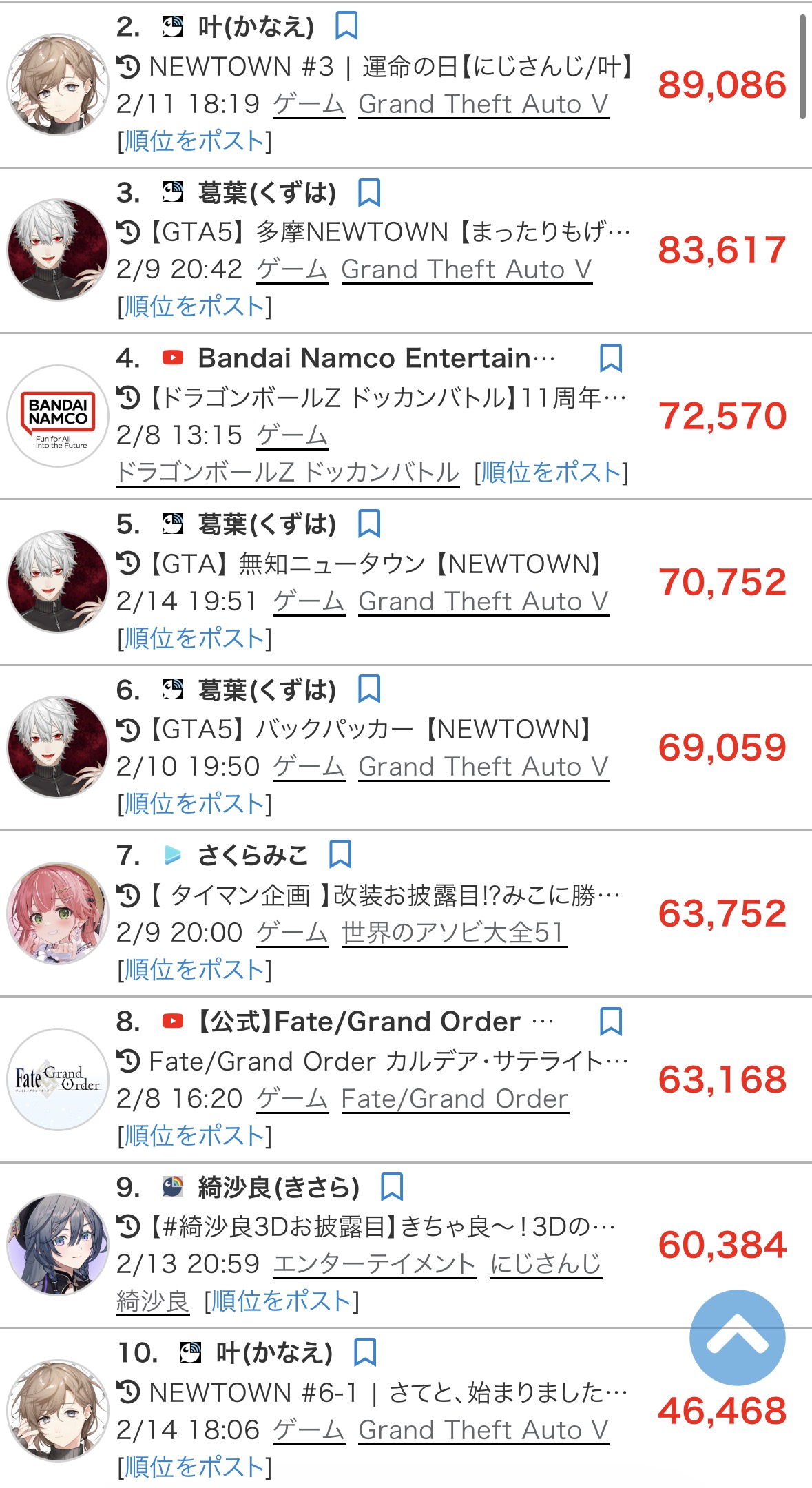 | … | 3526/02/15(日)19:56:01No.1402371590そうだねx6これどうせ1位がホロライブで抜かされたのを認めたくないから1位切っただけなんでしょ |
