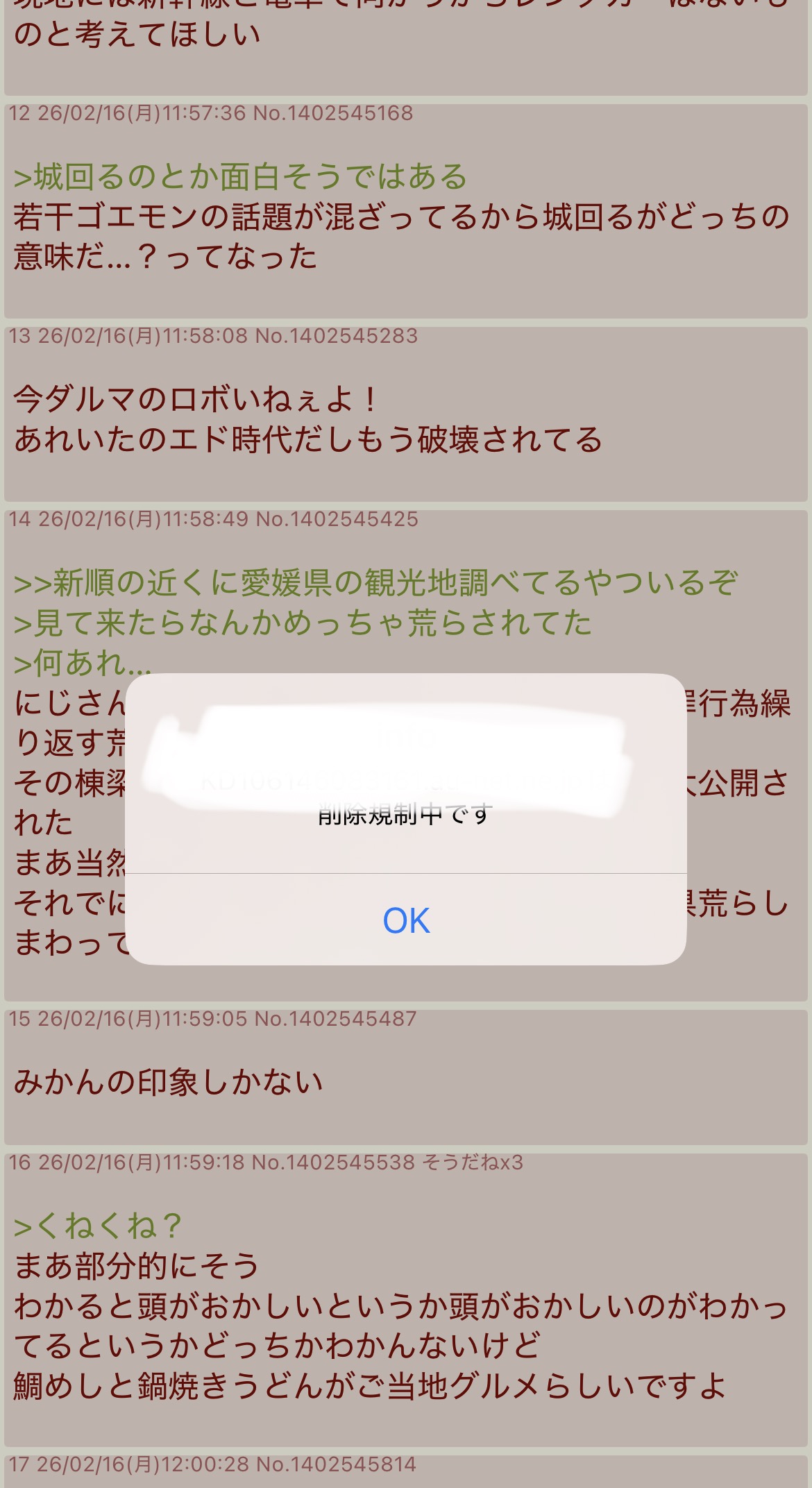 | … | 3026/02/16(月)12:05:22No.1402546997+削除規制なんてあるんだ |