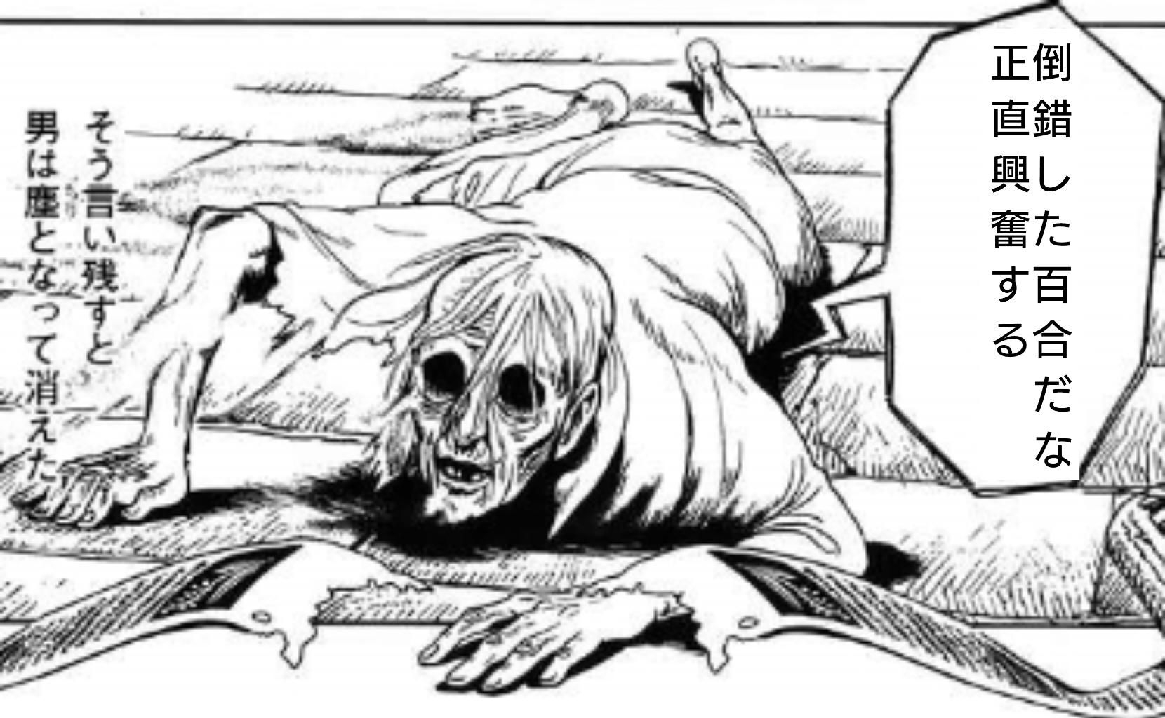 | … | 826/02/16(月)10:53:09No.1402531570+17ページ目の吹き出しの線でスジ作るのってもしかして凄い漫画表現の新発明なのでは? |