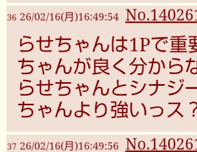 | … | 2926/02/16(月)16:38:18No.1402610304+>ちょっと前から実装されたっぽいのでわかってないんっスが |