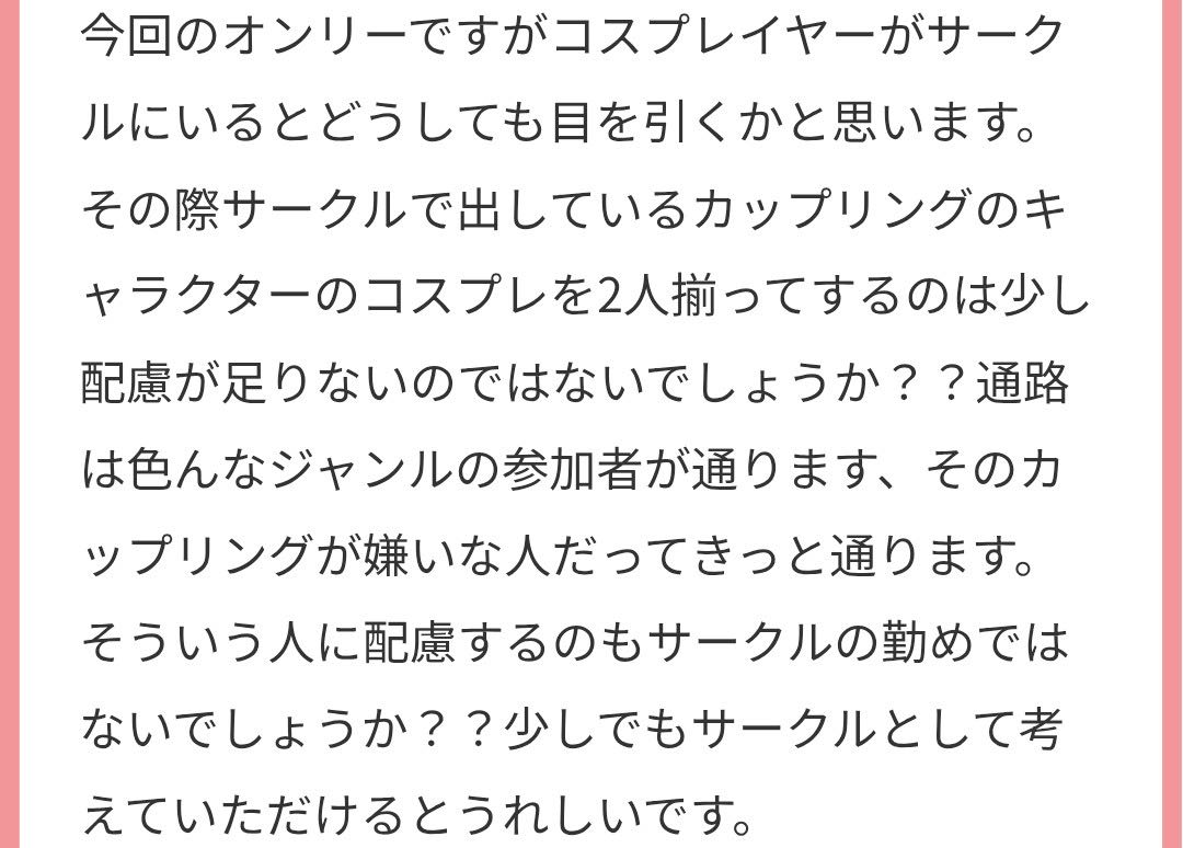 | … | 5526/02/16(月)18:47:56No.1402642825+まあ色々問題起こる可能性もあるとはいえ女性作家が男性向け描いたりイベント出る分には好きにすりゃいいんじゃない? |