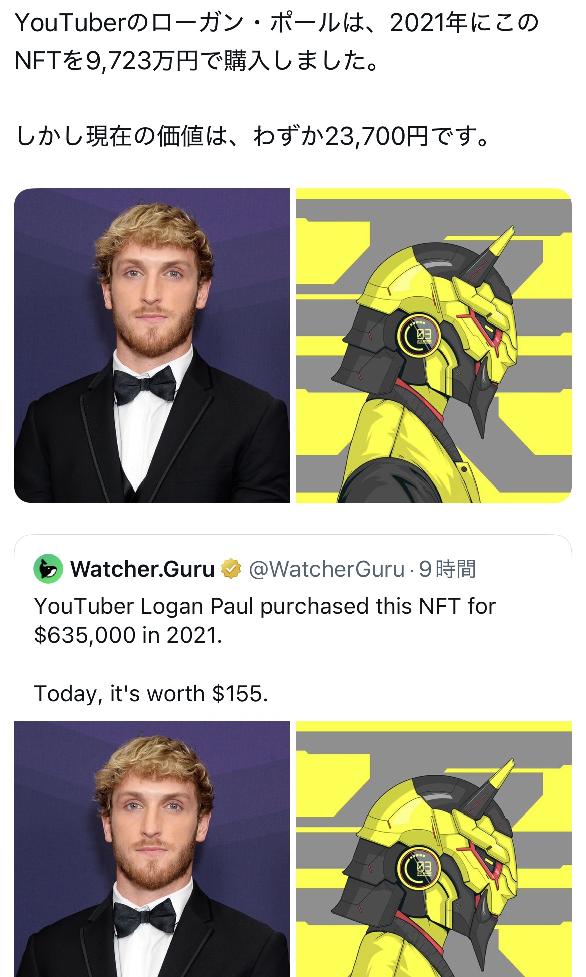 | … | 226/02/16(月)19:14:05No.1402651801そうだねx16ローガンポールは別に端金だからいいんじゃないの |