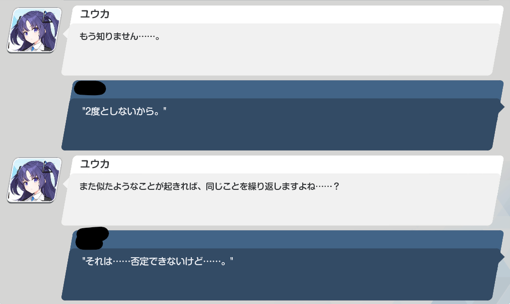| … | 98626/02/16(月)20:24:04No.1402679431+ずっと心配してたんですよ…って小声で言うユウカちゃんの正妻力 |