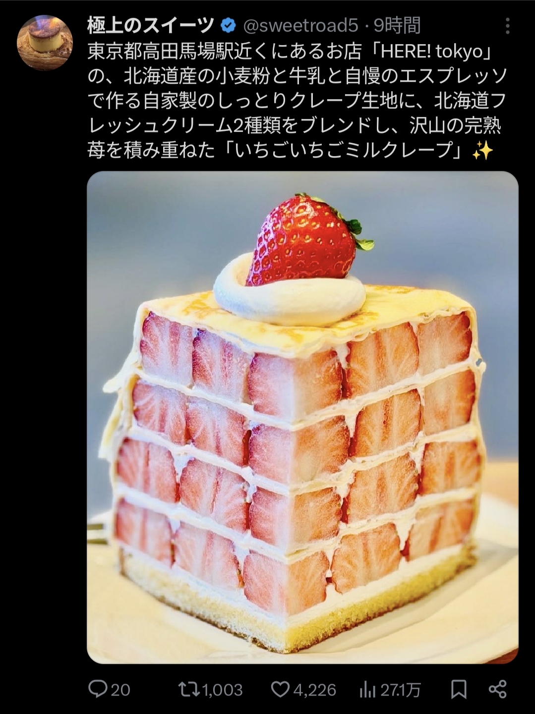 | … | 4526/02/16(月)21:09:23No.1402698836そうだねx2ミルクレープにこんなに苺いらないかな… |