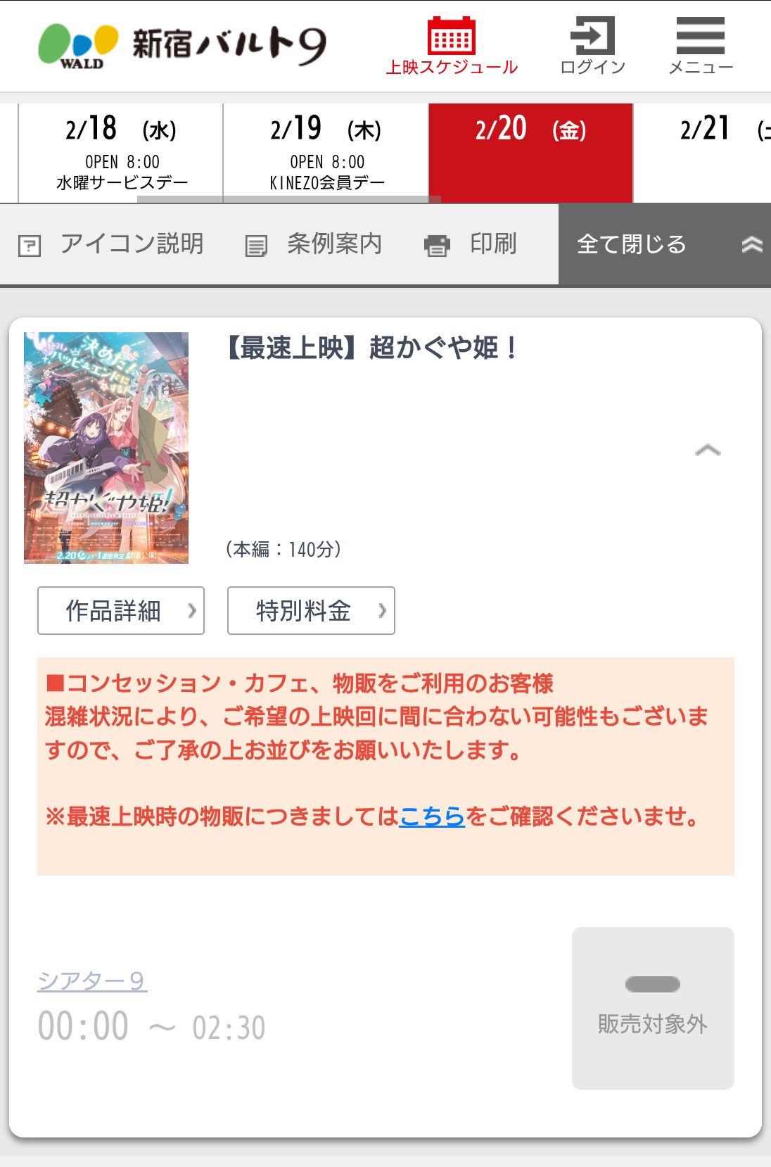 | … | 24426/02/16(月)22:38:45No.1402733979+会員特典でキャンセル可能だし朝一確保して初日上映全部席埋まったら金曜休み検討しよう… |