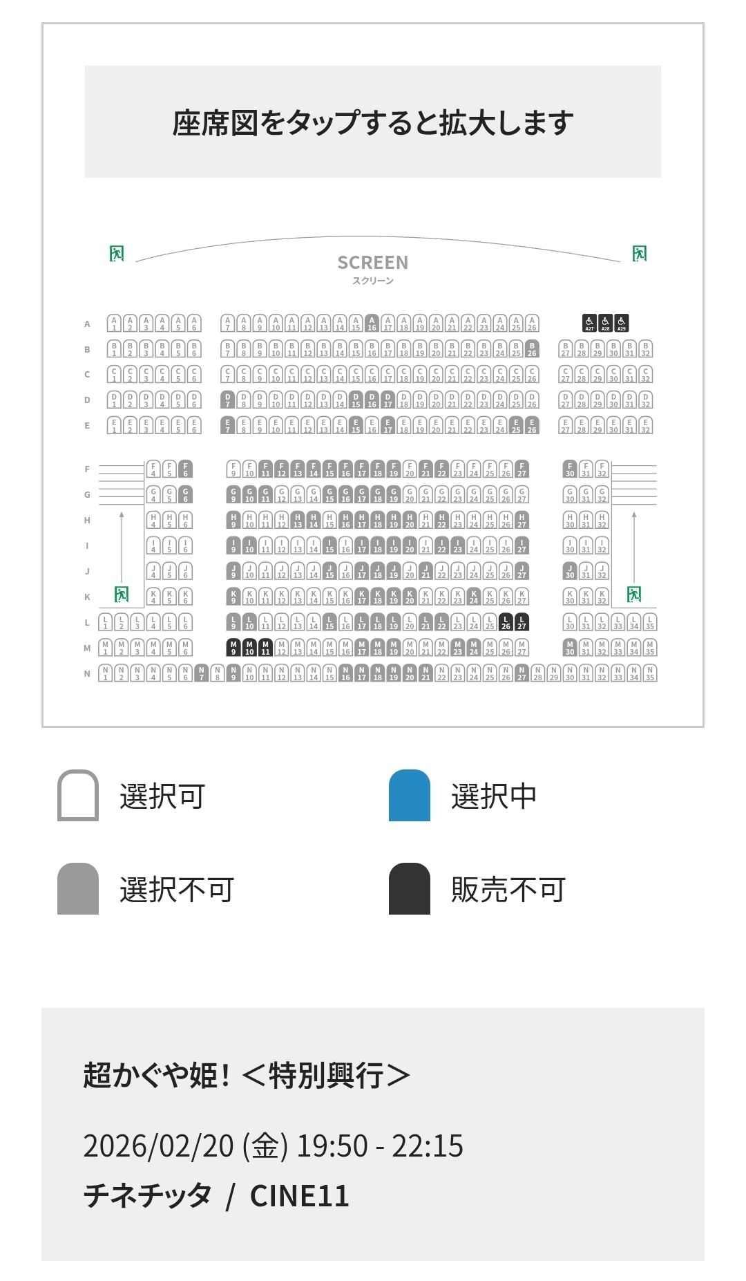 埋まり具合8割ぐらいの状態で座席選択画面たどり着けたから勝ったなと思ったけどそこから先5回くらい座席を選択できませんでしたで弾かれて死