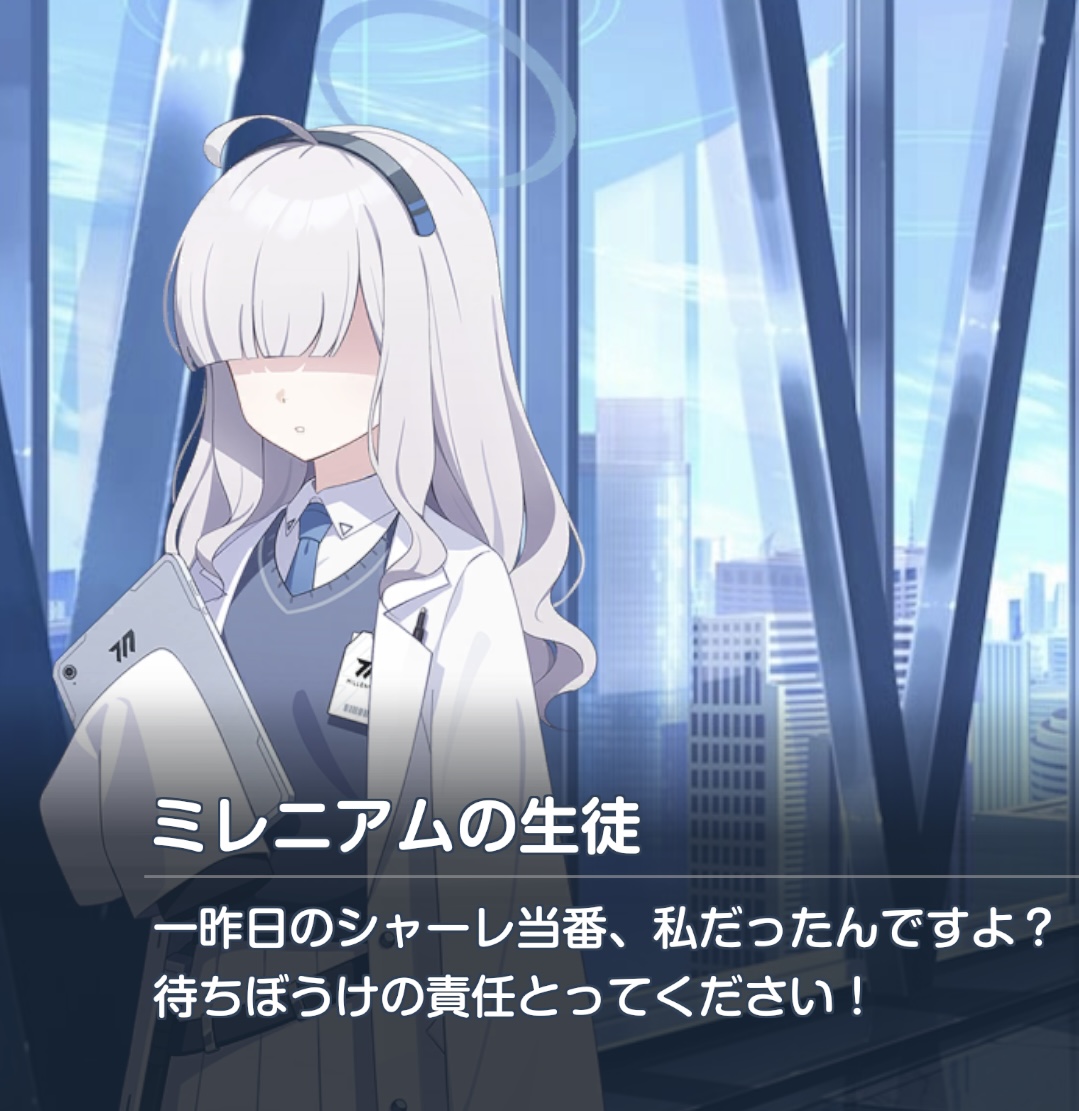 | … | 926/02/17(火)12:21:25No.1402870372+そういやアリウス組とかはシナリオ未クリア先生にモモトーク警告でたりしないの? |