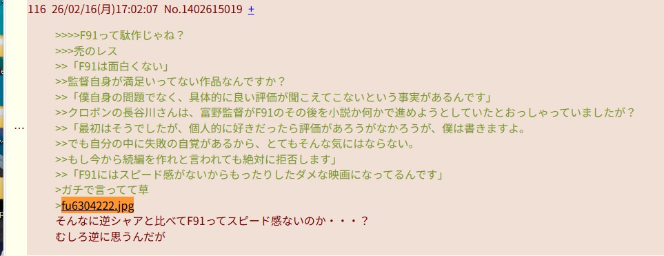 | … | 44826/02/17(火)15:25:38No.1402917525+F91の狂信者って事? |