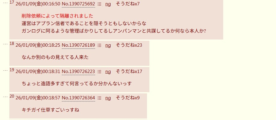 | … | 7826/02/17(火)13:46:50No.1402895534+他の無関係のスレにコピペも来なくなってたから楽なもんだ |