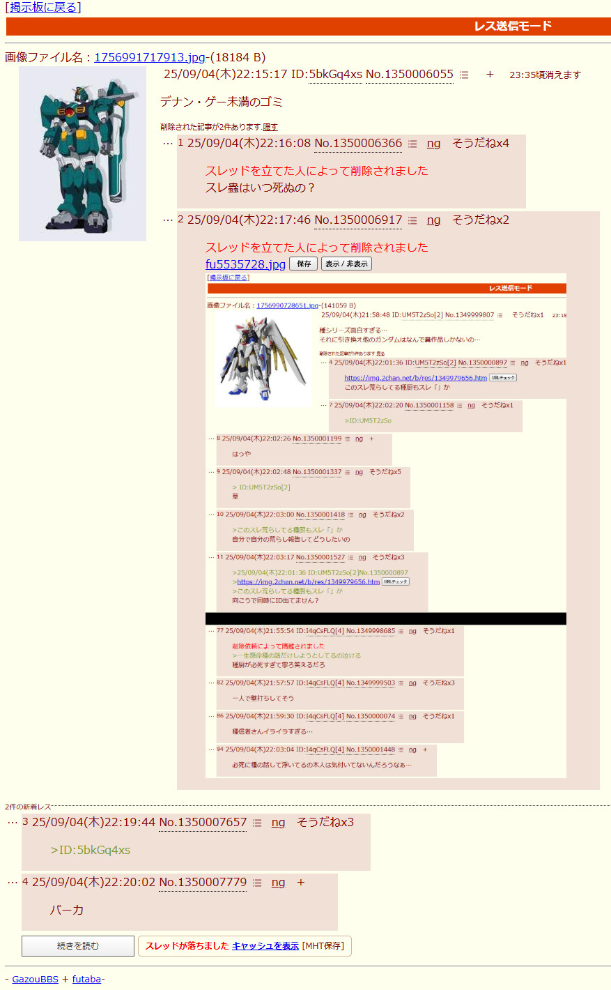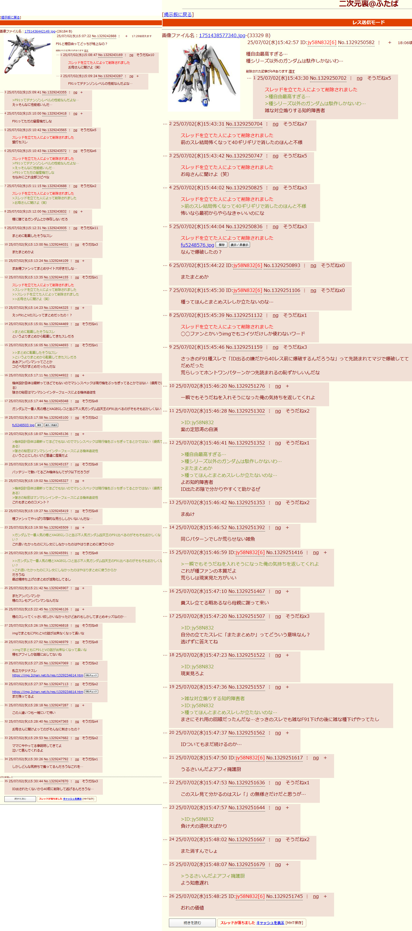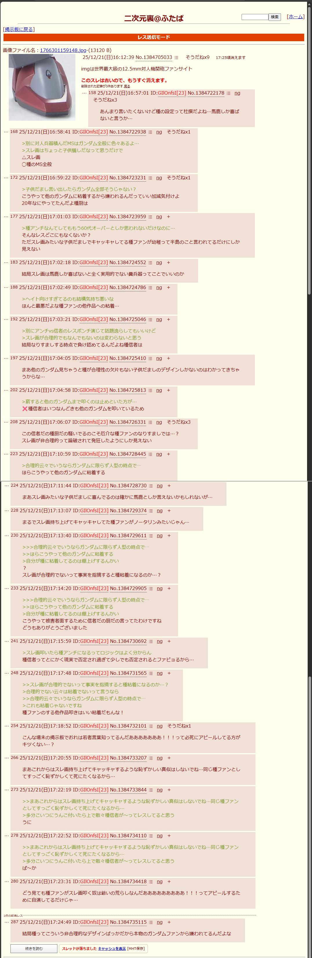 | … | 42126/02/17(火)15:22:15No.1402916768+>>>閃ハサスレとかで隔離されてたレスって |
