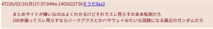 | … | 41326/02/17(火)15:20:51No.1402916462+>>閃ハサスレとかで隔離されてたレスって |
