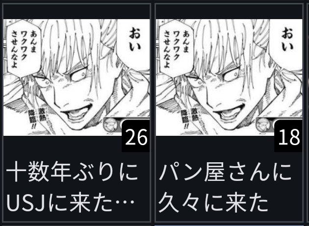 | … | 26326/02/17(火)16:55:48No.1402935022そうだねx7>狗巻先輩は語彙がパンしかない |