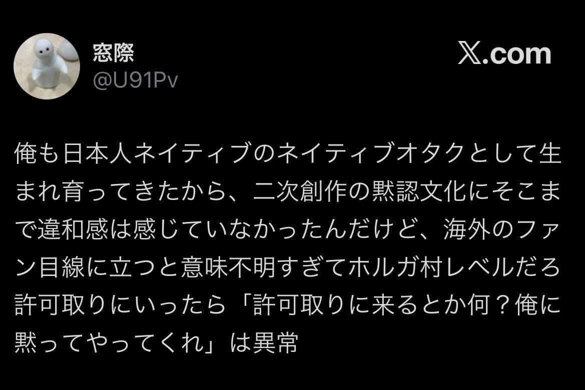 | … | 14626/02/17(火)18:06:34No.1402951532そうだねx2>海外での二次創作は基本的に許諾を得てから制作するのが常識 |