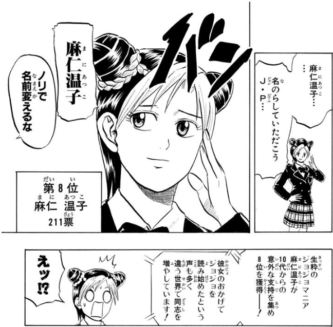 | … | 8426/02/17(火)20:32:58No.1402999337+第8位は空条承太郎!でもう爆笑したよ |