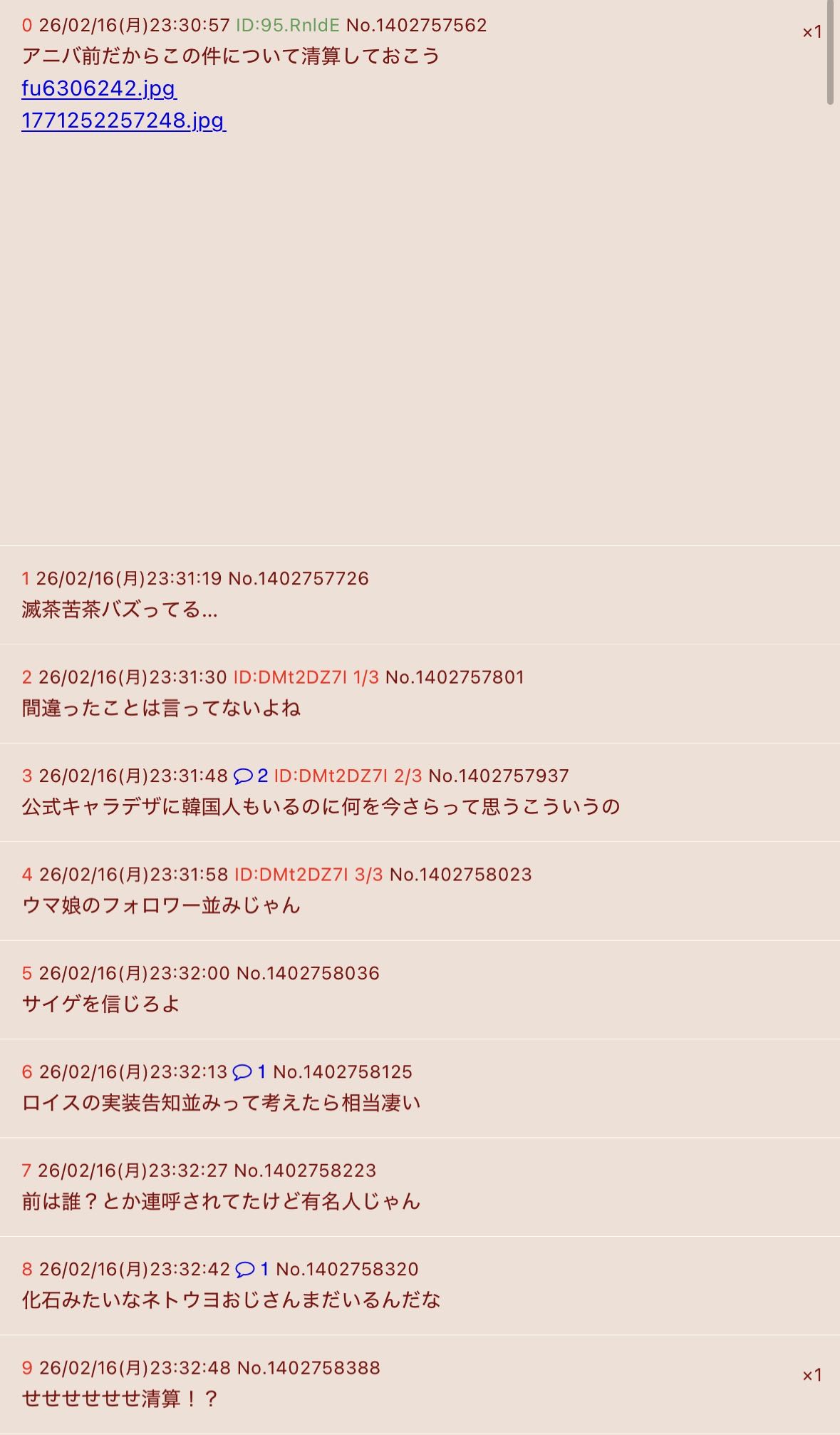 | … | 726/02/17(火)19:52:31No.1402984295+めっちゃ叩かれてるな |