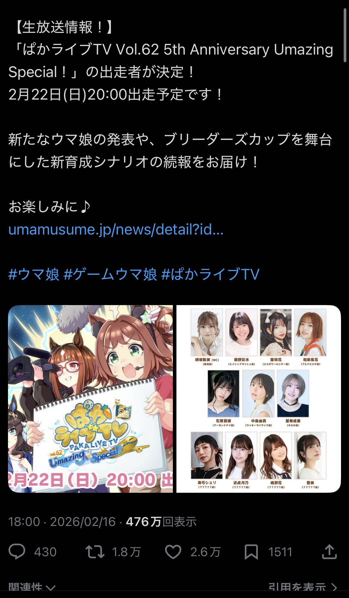 | … | 526/02/17(火)19:52:05No.1402984146そうだねx3>ウマ娘のフォロワー並みじゃん |