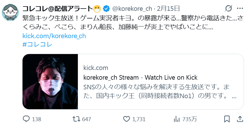 | … | 7126/02/18(水)00:54:21No.1403089491そうだねx1>コレコレって人もvもよく知らない… |