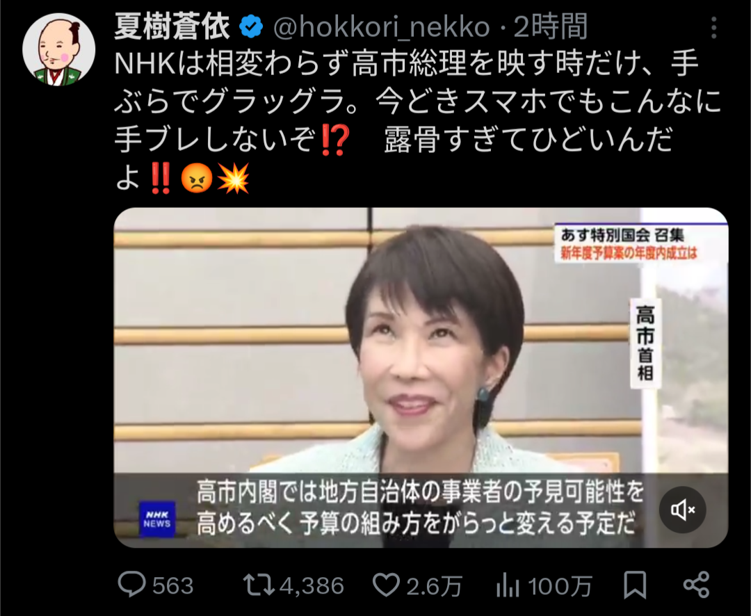 >普通に高市映すと中国に怒られるってマジなんかね