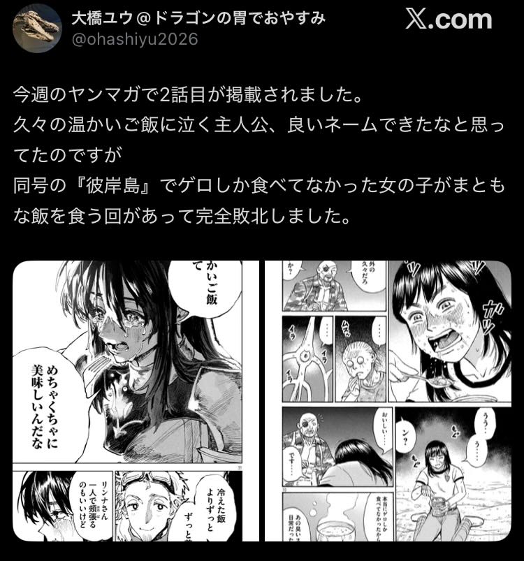 | … | 12026/02/18(水)16:44:04No.1403220254+自虐しつつ彼岸島に余裕で勝っているよね |