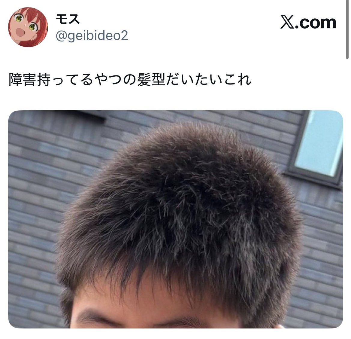 | … | 12126/02/18(水)17:19:34No.1403227331+これ本人的にはアニメの主人公みたいなツンツンヘアーだと思ってるんだろうか… |