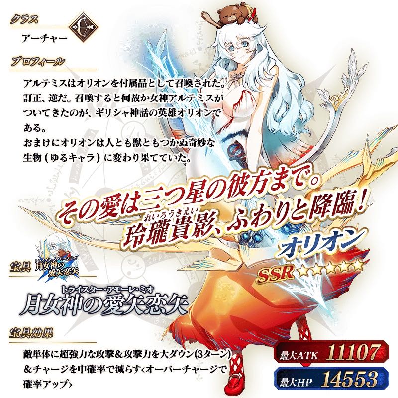 | … | 13426/02/18(水)20:06:42No.1403278395+これであのイシュタルの強化の時とかずっとオリオンの方が先だろ!って嘆いてた「」も成仏するかな… |