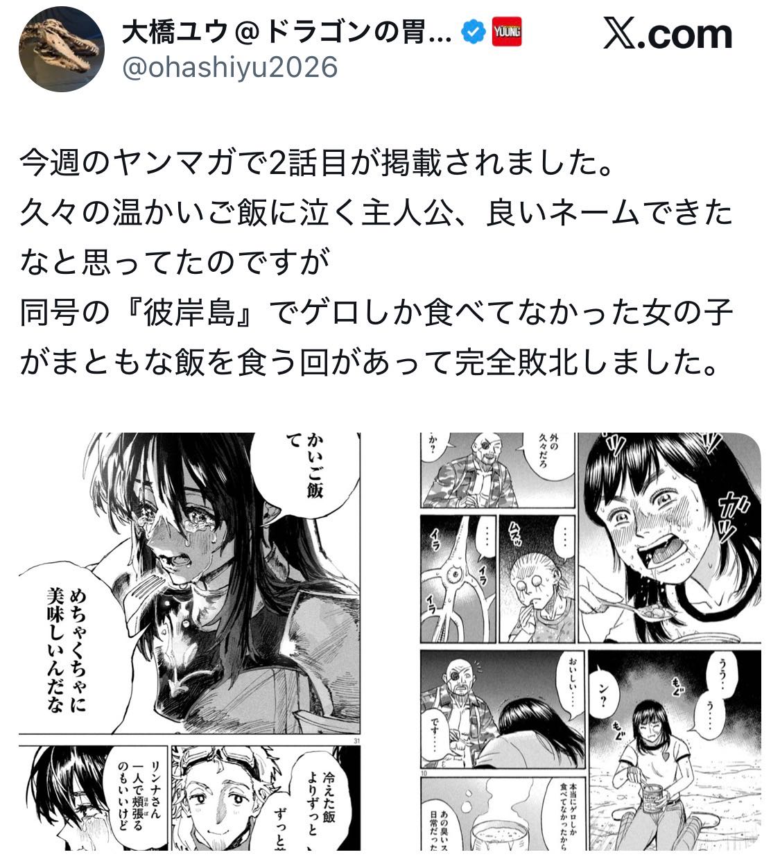 | … | 926/02/18(水)20:27:43No.1403285524そうだねx7ゲロしか食ったことがないって何なんだよ… |
