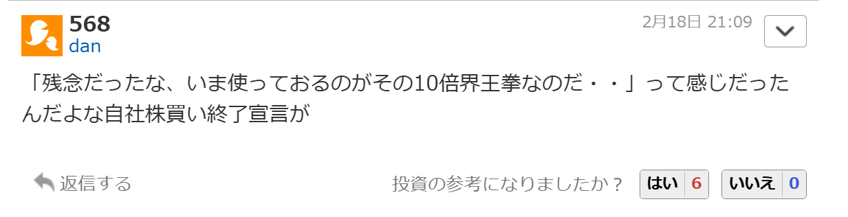 | … | 1226/02/18(水)22:51:07No.1403338641+成長のために投資するより株価対策に金使って株価が上がった方が嬉しい謎のファンばかり集めたから仕方ない |