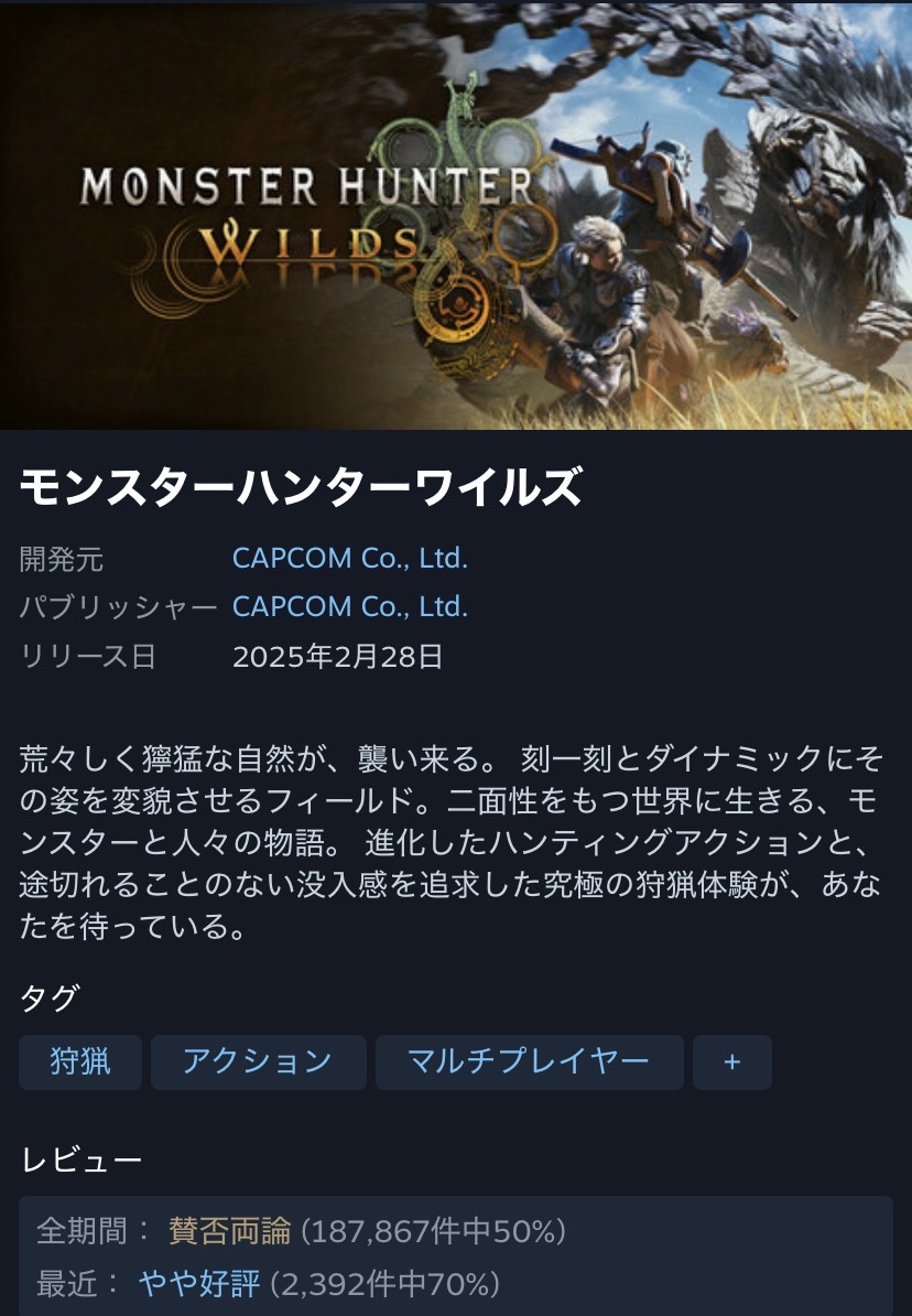 | … | 3126/02/19(木)08:51:15No.1403412257そうだねx2多分ゲハは知らんだろうけどSteamの評価ってやや好評でも十分地雷認定されるんだぜ |