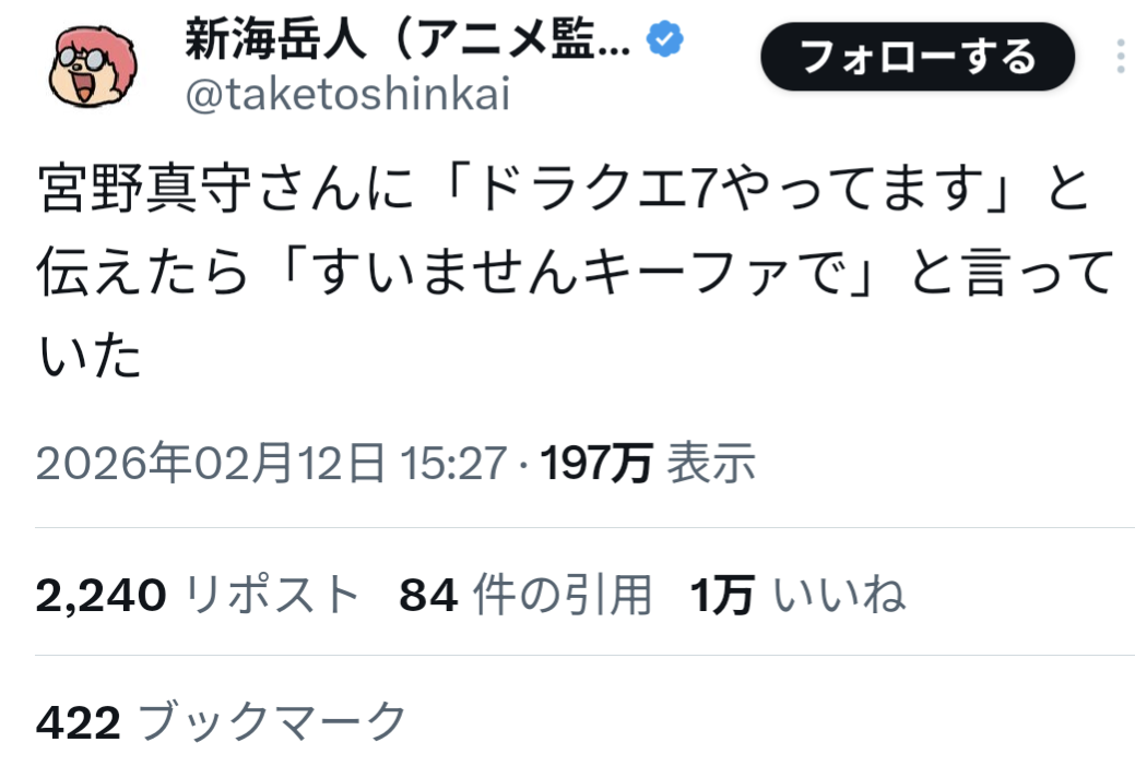 | … | 226/02/19(木)11:16:47No.1403433527そうだねx13リメイクのキーファカッコよかったよ宮野 |