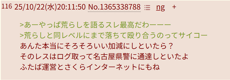 | … | 9726/02/19(木)13:25:41No.1403464941+>ママリスに荒らされそう |
