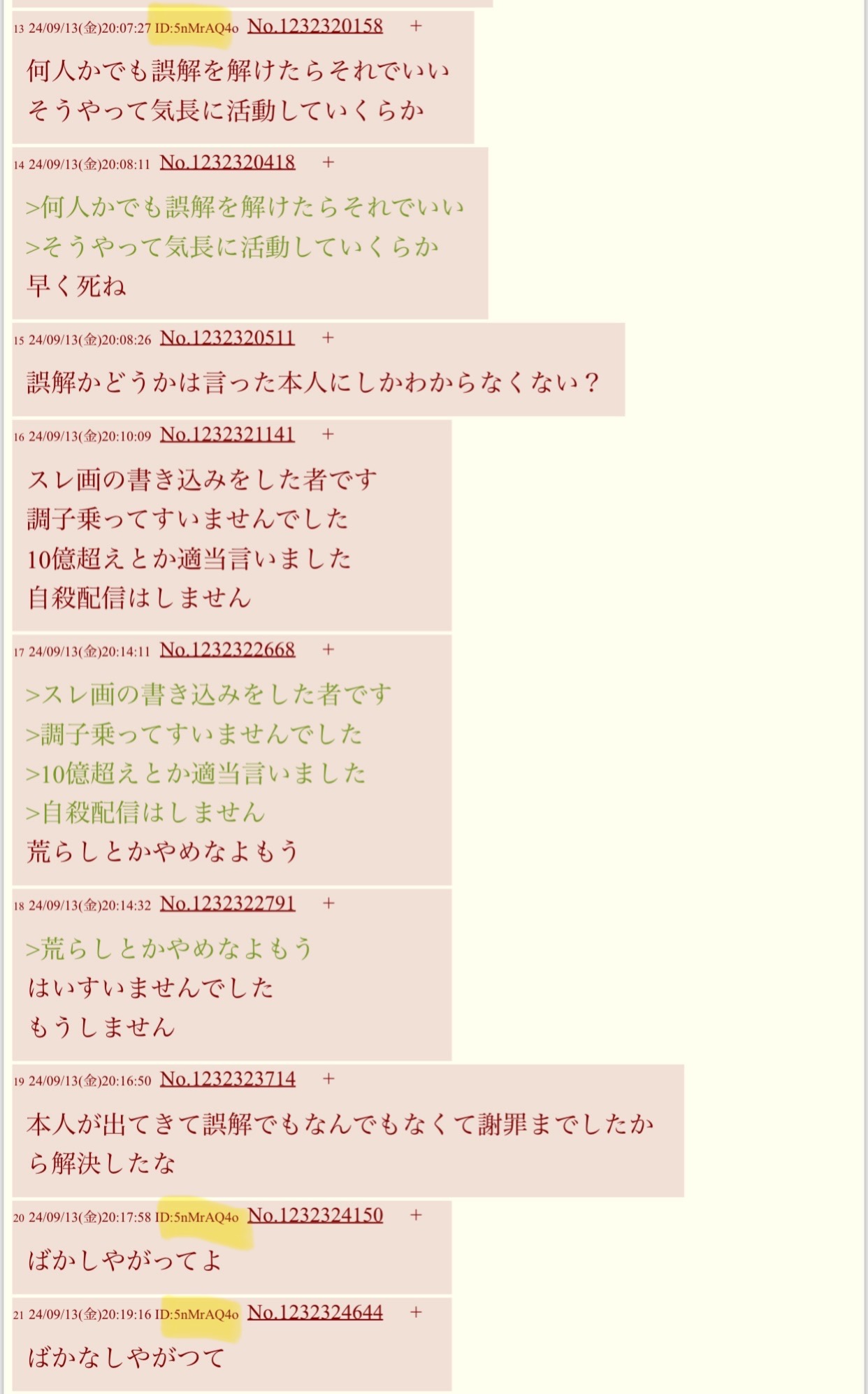 | … | 6426/02/19(木)13:39:21No.1403468008+>想定した流れになるのが最優先だから平気で自分も叩くってのは前に言われてたな >何の意味があるのかは分からないが 自分が建てたスレが盛り上がっていればどんな内容でもそれでいいんじゃない?しらんけど |