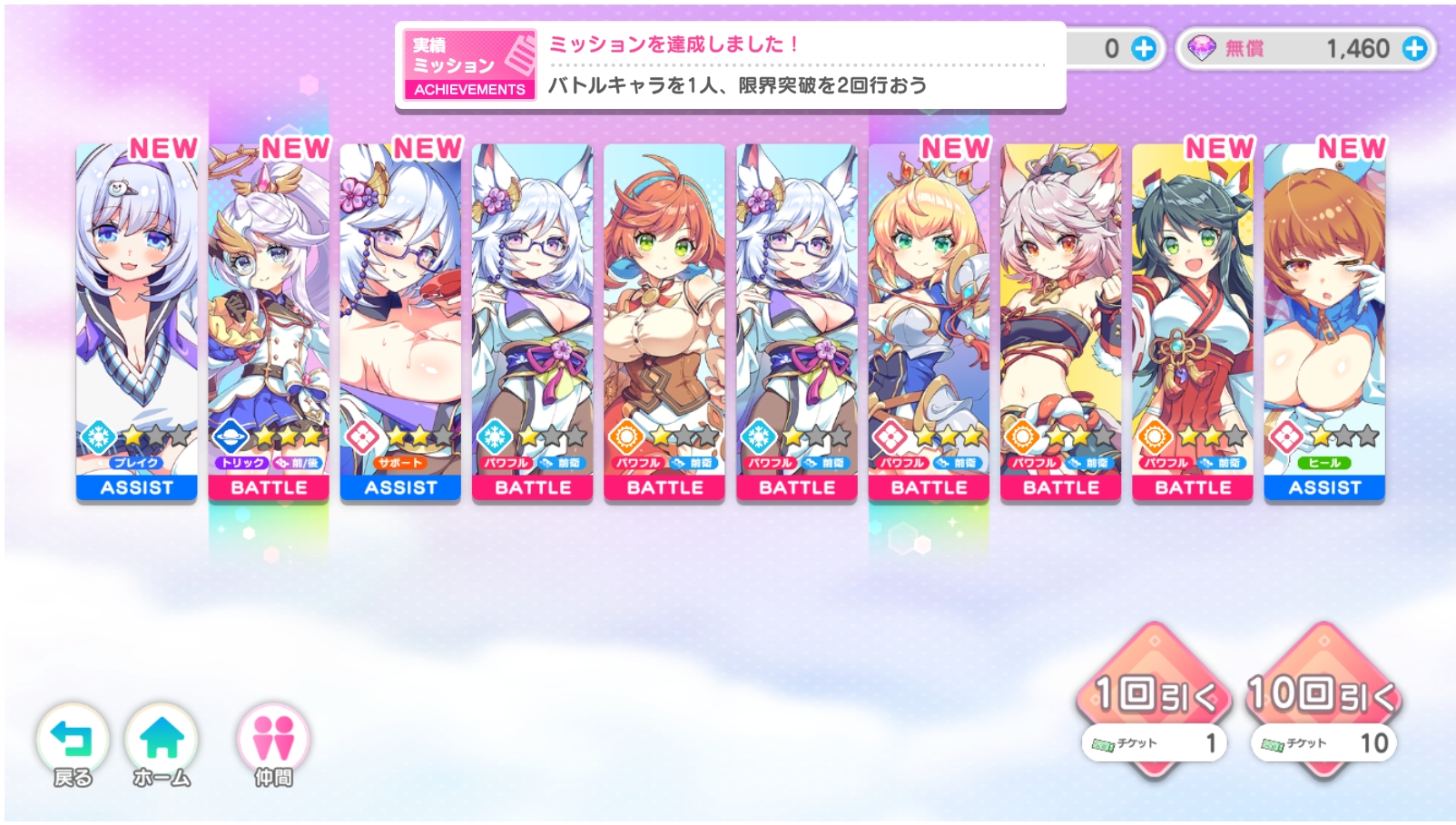 | … | 20726/02/19(木)21:34:20No.1403593983+>普通の放置ゲーって1章クリアしたら10連くらいくれないっスか? |
