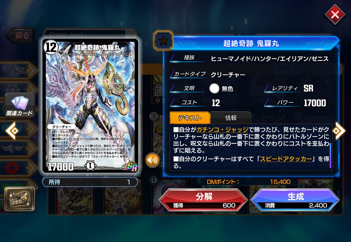 | … | 7526/02/19(木)21:33:46No.1403593734+>復帰して過去のカード見てるんだけどこいつはクリーチャーの効果ランダムに出る感じなの?7マナ重いから分解でもいいのかな |