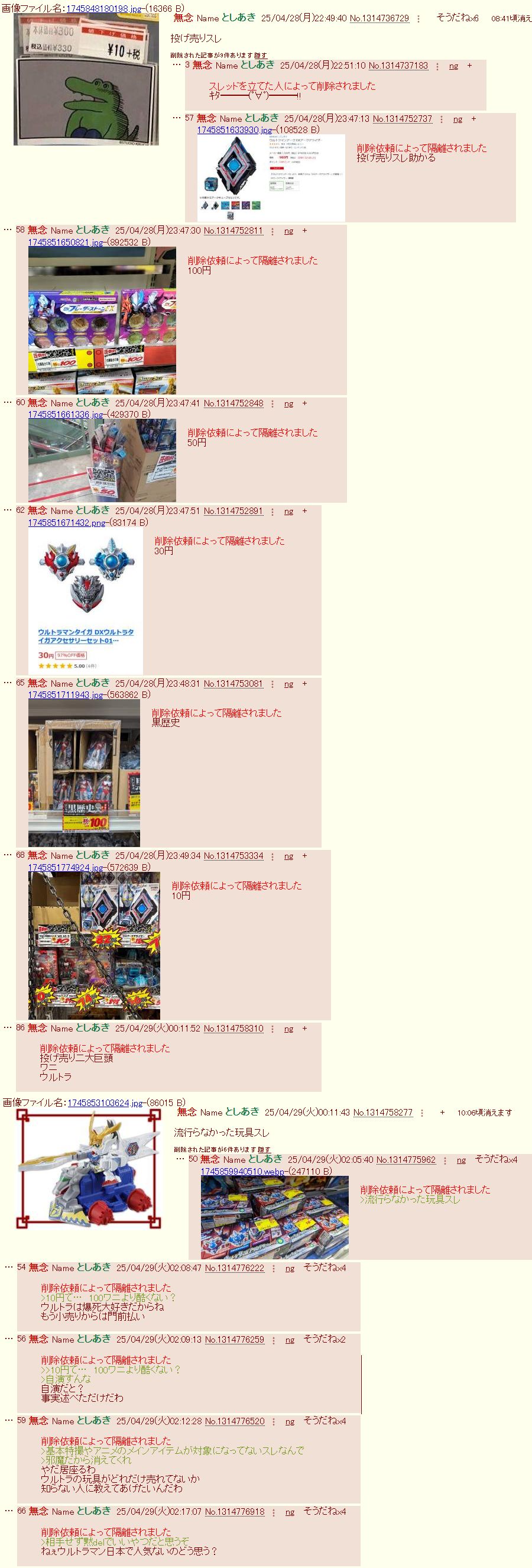 | … | 5626/02/19(木)22:55:18No.1403624561そうだねx2開封スレって毎回開封するから見ててって本文固定みたいなもんだからスレ見たくないならNG入れて近寄ってくるなよ |