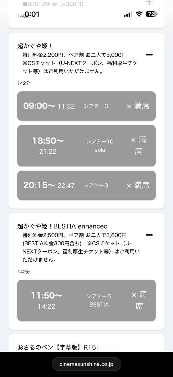 | … | 7626/02/20(金)00:03:21No.1403645952+>シネマサンシャイン池袋一般0時終わってた…始まる前から… |