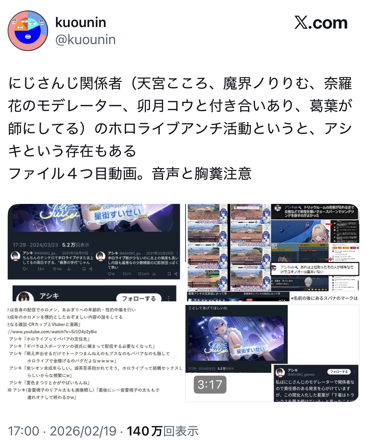 | … | 9026/02/20(金)13:59:06No.1403757855+>またこのアカウントか… |