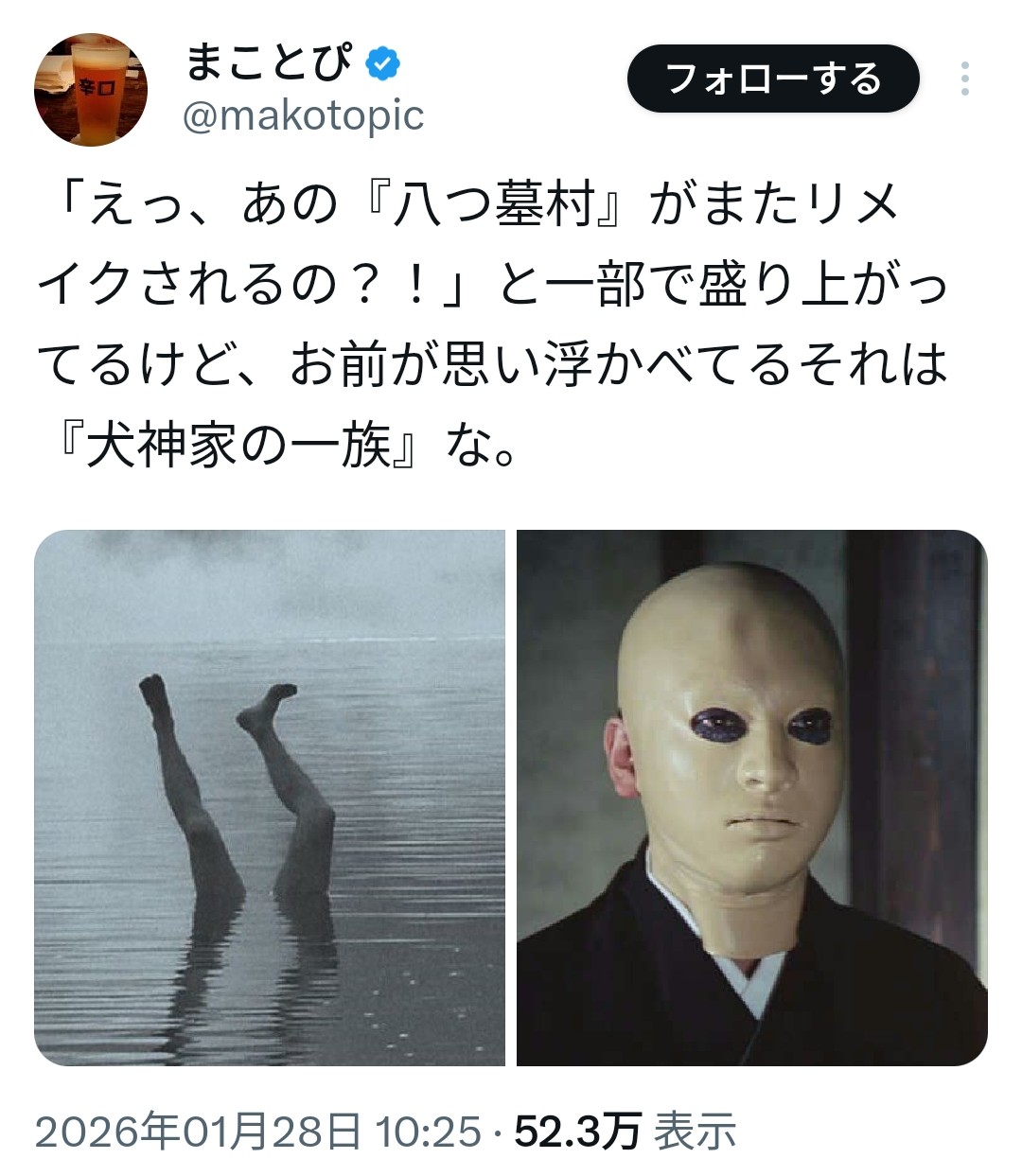 | … | 126/02/20(金)16:29:50No.1403789357そうだねx32八つ墓村もそれなりの回数リメイクされてなかったっけ |