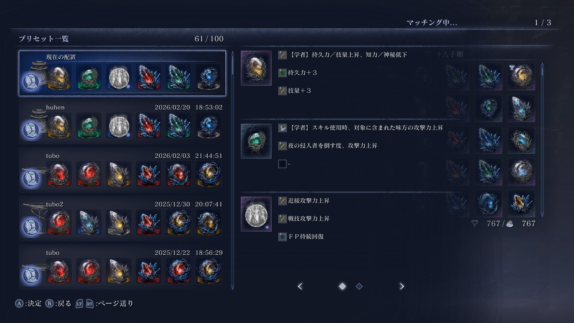 | … | 7526/02/20(金)19:00:02 ID:LSueCVhQNo.1403827527+カンスト帯で合う学者の遺物と立ち回りみて学んだけど遺物はアーツ継続ダメと技量上昇くらい、立ち回りは夜ボスにナイフデバフだけが多いなもうみんな普通に刺剣で殴り殴りしてるわ |
