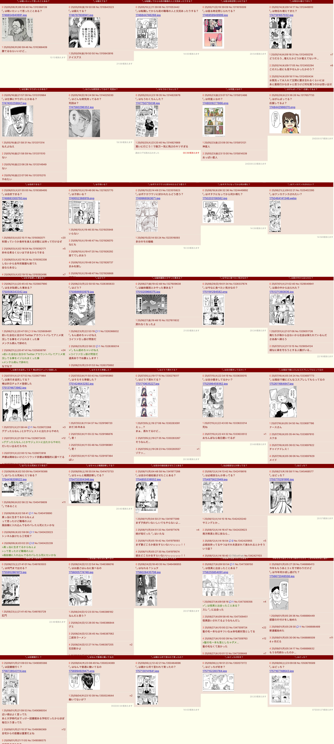 | … | 526/02/20(金)21:24:40No.1403885416+なんかひとつ立ったら同じようなスレ立ちまくるのっていつものいもげじゃ… |