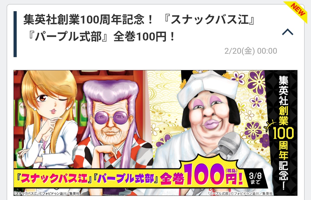 集英社100周年でセールする作品がバス江!?このスレは古いので、もうすぐ消えます。