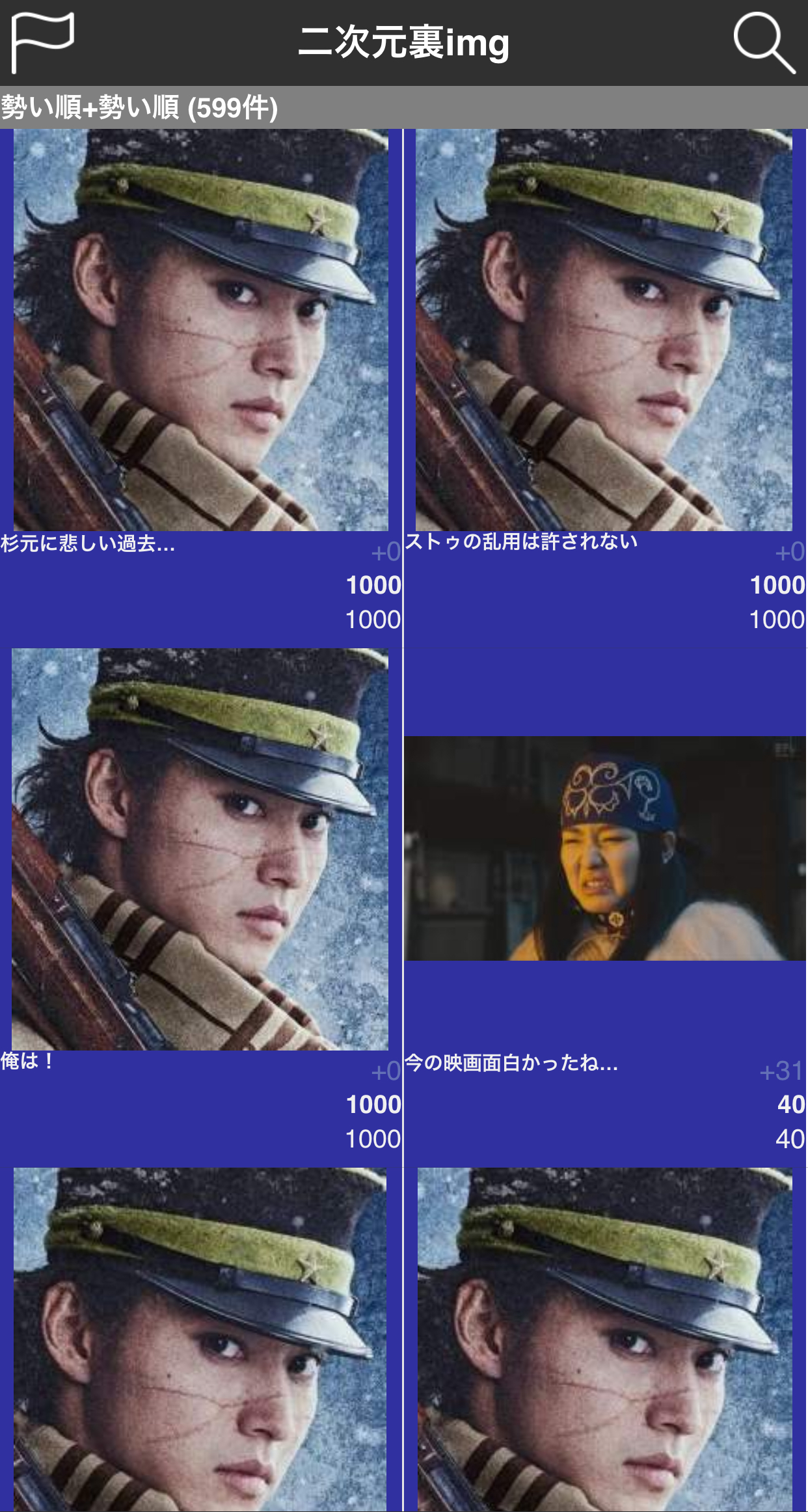 | … | 31326/02/20(金)23:54:46No.1403945662+アシリパさん美人なのに変顔再現が絶妙なのズルすぎる… |