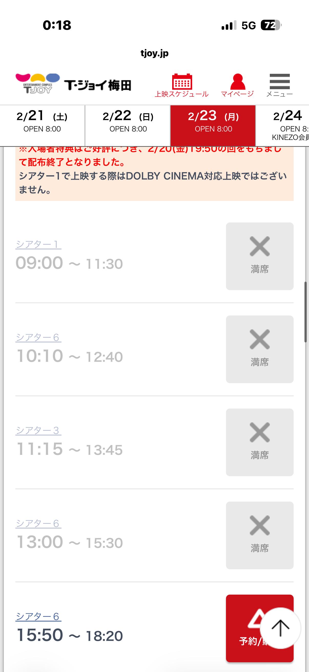 | … | 2826/02/20(金)23:56:41No.1403946332+なんかチネチッタの予約ってすでに月曜のやつ非会員でも普通にできるんだね |