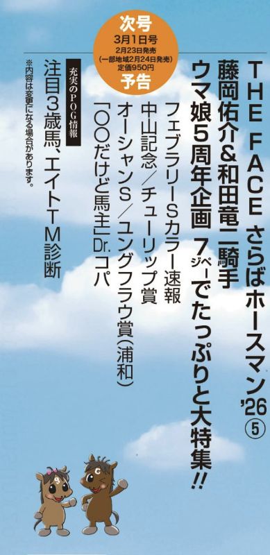 | … | 4126/02/21(土)01:30:00No.1403969049+自レスですがアドマイヤズーム入れるの忘れてました! |