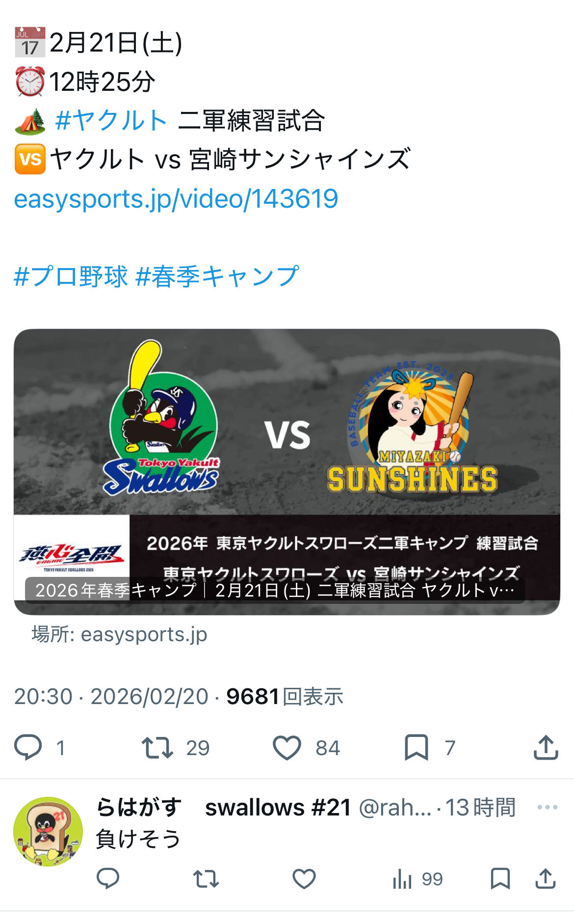 | … | 1326/02/21(土)09:02:38 ID:7VBKTXtoNo.1404004872+https://web.archive.org/web/20260217092436/https://www.yakult-swallows.co.jp/news/detail/31939 |